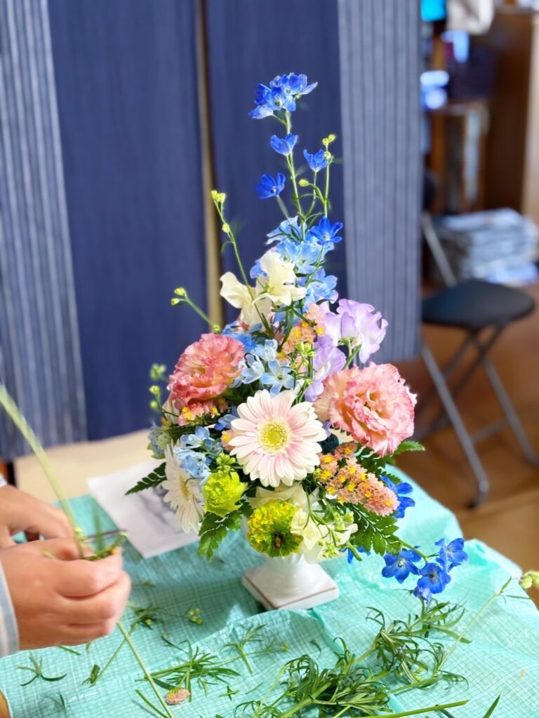 また、ベーシックからヨーロピアンにいたるフラワーデザインに伝統的ないけばなをはじめ、リースやスワッグ、花束、ハーバリウム、コサージュにウェディングブーケとあらゆる花スタイルを一つの教室でトータルに学べます。